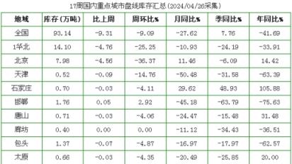 繼上周樂鋼一條棒材線復(fù)產(chǎn)后,本周樂鋼再開一條棒材線生產(chǎn)螺紋,不過盤螺繼續(xù)停產(chǎn)。敬業(yè)產(chǎn)量維持不變,而東華本周建材線全部停產(chǎn),唐山鑫達(dá)仍然停產(chǎn)。從產(chǎn)量變化來看,本周華北地區(qū)無縫鋼管廠家整體建材總產(chǎn)量變化不大,仍然保持低位運(yùn)行。從市場(chǎng)到貨情況來看,受無縫鋼管廠家直發(fā)工地、無縫鋼管廠家資源集港等因素影響,本周,京津冀地區(qū)市場(chǎng)到貨情況較差的局面仍未得到明顯改善,社庫(kù)進(jìn)一步下降,市場(chǎng)資源進(jìn)一步減少。資源短缺致使商家惜售心態(tài)強(qiáng)烈,這也是本周現(xiàn)貨端較期貨端韌性更強(qiáng)的原因之一,對(duì)現(xiàn)貨價(jià)格起到較強(qiáng)的支撐作用。本周北京建材庫(kù)存55.16萬噸,較上周減少5.47萬噸。天津建材庫(kù)存為8.2萬噸,比上周減少1.77萬噸。唐山建材庫(kù)存為13.43萬噸,比上周減少1.21萬噸。市場(chǎng)庫(kù)存消化速度較快。
