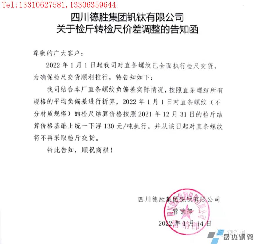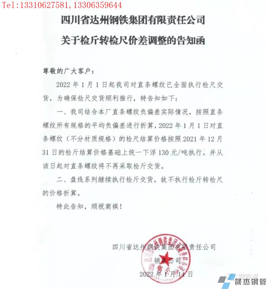 免責(zé)聲明:本網(wǎng)站(山東聊城晟杰無縫鋼管廠www.maturesexus.com)刊載的“四川多家鋼企發(fā)布檢斤轉(zhuǎn)檢尺價差調(diào)整通知”等均源于網(wǎng)絡(luò),版權(quán)歸原作者所有,且僅代表原作者觀點,本文所載信息僅供參考。轉(zhuǎn)載僅為學(xué)習(xí)與交流之目的,如無意中侵犯您的合法權(quán)益,請及時聯(lián)系刪除。本網(wǎng)站刊登此篇文章并不意味著本站贊同其觀點或證實其內(nèi)容的真實性,我們不對其科學(xué)性、嚴(yán)肅性等作任何形式的保證。如果侵犯了您的版權(quán),請盡快聯(lián)系我們予以撤銷,謝謝合作!