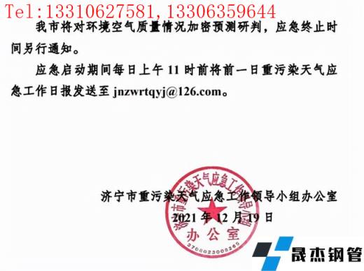 根據(jù)濟(jì)寧市環(huán)境空氣質(zhì)量研判專(zhuān)家團(tuán)隊(duì)會(huì)商結(jié)果,預(yù)計(jì)2021年12月20日起濟(jì)寧市將出現(xiàn)持續(xù)性中至重度污染,經(jīng)市重污染天氣應(yīng)急工作領(lǐng)導(dǎo)小組辦公室研究決定,濟(jì)寧市自2021年12月19日15時(shí)發(fā)布重污染天氣橙色預(yù)警,12月20日8時(shí)啟動(dòng)II級(jí)應(yīng)急響應(yīng)。