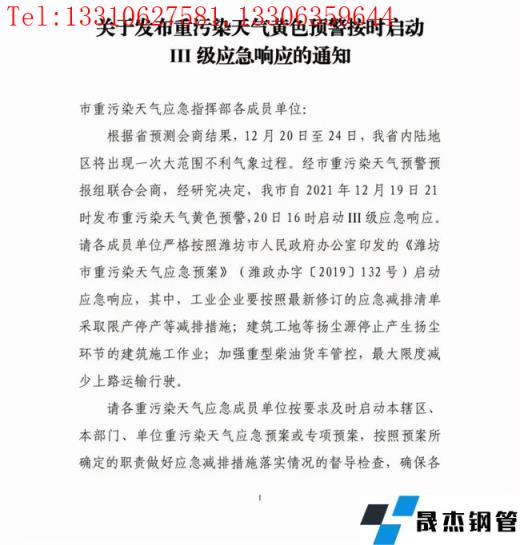 根據(jù)氣象預(yù)測(cè),自12月19日起,唐山市受弱氣壓場(chǎng)控制,風(fēng)力小、濕度大,擴(kuò)散條件差,將出現(xiàn)中至重度污染過(guò)程,達(dá)到橙色預(yù)警級(jí)別。為有效應(yīng)對(duì)此輪污染過(guò)程,最大限度減輕污染程度,按照省大氣辦《關(guān)于加強(qiáng)管控積極應(yīng)對(duì)本輪污染過(guò)程的提醒函》(冀氣領(lǐng)辦〔2021〕119號(hào))要求,市重污染天氣應(yīng)對(duì)指揮部決定,自2021年12月19日12時(shí)全市啟動(dòng)重污染天氣Ⅱ級(jí)應(yīng)急響應(yīng),具體解除時(shí)間另行通知。鋼鐵相關(guān)信息如下: