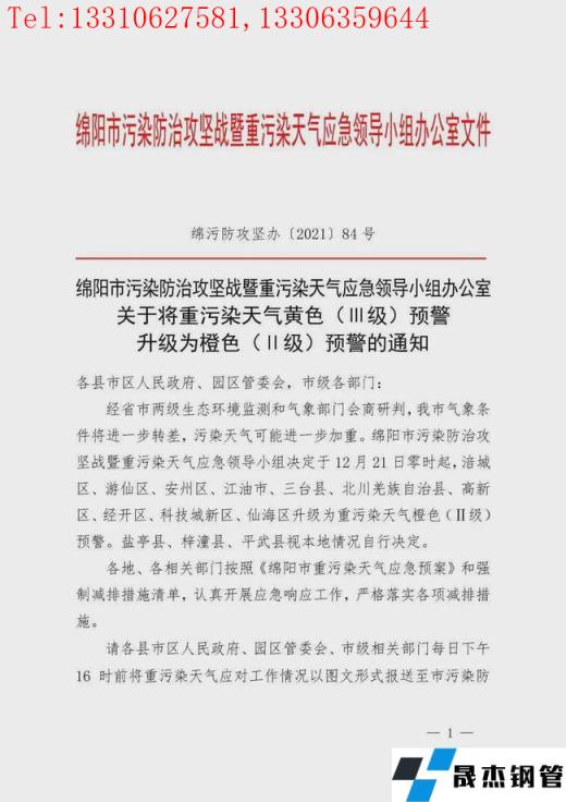 12月20日,市污染防治攻堅(jiān)戰(zhàn)暨重污染天氣應(yīng)急領(lǐng)導(dǎo)小組辦公室發(fā)布消息:經(jīng)省市兩級(jí)生態(tài)環(huán)境監(jiān)測(cè)和氣象部門(mén)會(huì)商研判,我市氣象條件將進(jìn)一步轉(zhuǎn)差,污染天氣可能進(jìn)一步加重。綿陽(yáng)市污染防治攻堅(jiān)戰(zhàn)暨重污染天氣應(yīng)急領(lǐng)導(dǎo)小組決定于12月21日零時(shí)起,涪城區(qū)、游仙區(qū)、安州區(qū)、江油市、三臺(tái)縣、北川羌族自治縣、高新區(qū)、經(jīng)開(kāi)區(qū)、科技城新區(qū)、仙海區(qū)升級(jí)為重污染天氣橙色(Ⅱ級(jí))預(yù)警。鹽亭縣、梓潼縣、平武縣視本地情況自行決定。
