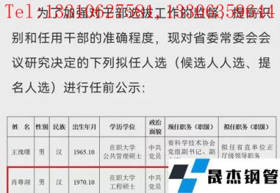 免責聲明:本網站(山東聊城晟杰無縫鋼管廠www.maturesexus.com)刊載的“大變動!涉及多家鋼企董事長、多地市委書記、北大系主任!”等均源于網絡,版權歸原作者所有,且僅代表原作者觀點,本文所載信息僅供參考。轉載僅為學習與交流之目的,如無意中侵犯您的合法權益,請及時聯系刪除。本網站刊登此篇文章并不意味著本站贊同其觀點或證實其內容的真實性,我們不對其科學性、嚴肅性等作任何形式的保證。如果侵犯了您的版權,請盡快聯系我們予以撤銷,謝謝合作!