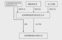 據(jù)了解,安鋼集團本次混改方案主要內(nèi)容為:先將安鋼集團100%股權(quán)評估后作價,出資至河南省國資委全資的河南機械裝備投資集團,同時將安陽鋼鐵20%股權(quán)無償劃轉(zhuǎn)到河南裝投集團;而后依托河南裝投集團在產(chǎn)權(quán)交易所公開掛牌并采取綜合評標方式確定一名戰(zhàn)略投資者,轉(zhuǎn)讓安鋼集團80%股權(quán);戰(zhàn)略投資者對安鋼集團進行增資擴股,并實施員工持股等中長期激勵。