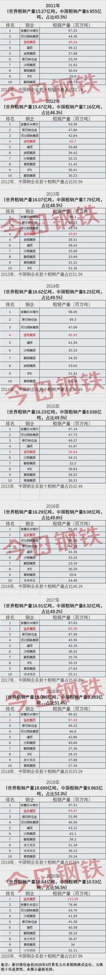 2021年8月,世界鋼鐵協(xié)會發(fā)布《世界鋼鐵統(tǒng)計數(shù)據(jù)2020》該統(tǒng)計數(shù)據(jù)根據(jù)2020年粗鋼產(chǎn)量情況對全球鋼鐵企業(yè)進行排名,并發(fā)布了全球前50大鋼鐵企業(yè)名單。中國寶武以2020年11529萬噸粗鋼產(chǎn)量位列榜首!這也是中國鋼企首次登頂世界之巔,也是世界鋼鐵企業(yè)首次沖破一億噸粗鋼產(chǎn)量大關!