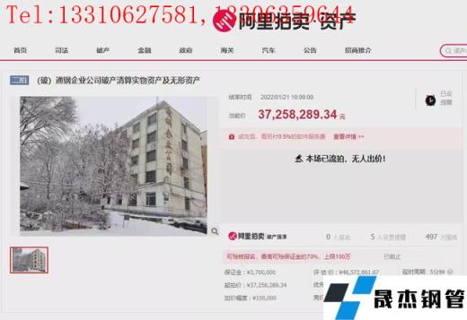 近日,阿里拍賣平臺發(fā)布通鋼企業(yè)名下房屋建筑物、構(gòu)筑物及其他輔助設(shè)施等資產(chǎn)的拍賣信息。本次競拍時間為1月20日是繼1月1日后的第二次拍賣,起拍價格也由之前的4657.28萬元降至3725.82萬元。