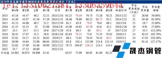 回顧近10年來成都建筑鋼材社會(huì)庫存春節(jié)前后對(duì)比,成都建筑鋼材庫存平均累庫量在41.17萬噸左右,累庫幅度在90.88%,2020年累庫較為明顯。2022年春節(jié)放假較早,川內(nèi)短流程無縫鋼管廠停產(chǎn)放假時(shí)間提前,加之北方資源到貨同比減少,節(jié)前成都建筑鋼材社會(huì)庫存累積緩慢。近10年來春節(jié)后成都建筑鋼材庫存峰值均出現(xiàn)第3-4周,累庫周期約21天。節(jié)后庫存峰值最高為2020年近158.05萬噸,其次是2021年的118.12萬噸。從川內(nèi)無縫鋼管廠停產(chǎn)檢修計(jì)劃,以及省外無縫鋼管廠資源到貨情況來看,預(yù)計(jì)節(jié)后四川建材庫存累積周期或較去年縮短,且?guī)齑娣逯狄嗝黠@下降。