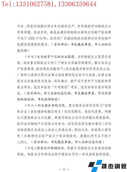 著力推進全市現有的27家鋼鐵企業(含在建唐銀搬遷項目)實現規?;?、集團化發展,構建以大型鋼鐵企業為支撐、新優專特企業為補充的梯次發展格局,提升全市鋼鐵產業的綜合競爭力。對完成實質性兼并重組(實現實際控股且完成法人或法人隸屬關系、股權關系、章程等工商變更)后取得的合規產能用于項目建設時,置換比例可以不低于1.25:1。