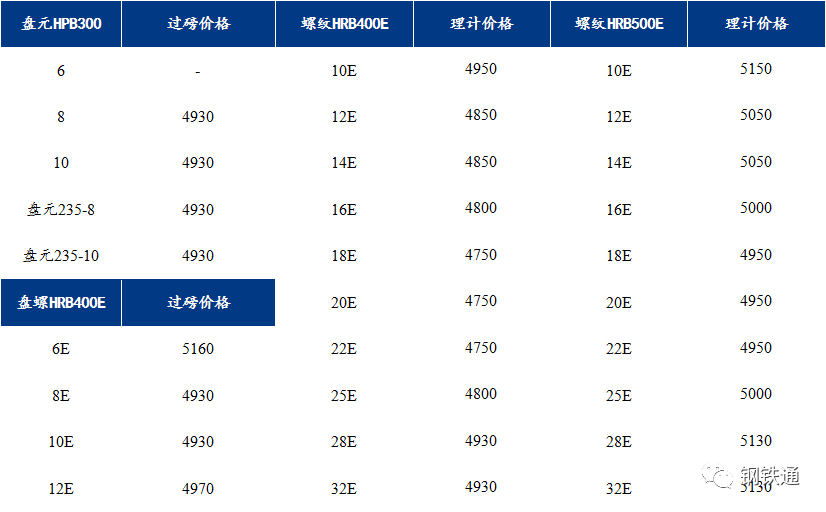 2、盤螺平穩(wěn):HRB400EΦ8-10mm盤螺指導(dǎo)價(jià)格為4940元,6mm加價(jià)500元/噸;