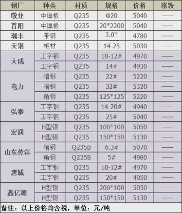 今日板、型材共11家無縫鋼管廠調(diào)價發(fā)布,其中:
