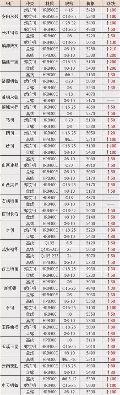 上調(diào)21家,占比91.3%,調(diào)價(jià)幅度30-210元/噸;