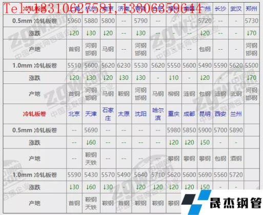 全國23個主要市場1.0mm 冷軋板卷平均價格5612元/噸,較上個交易日下調21元/噸。