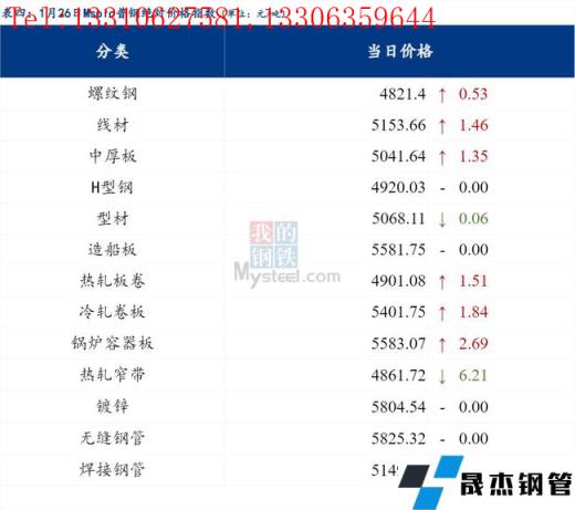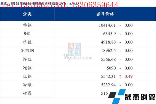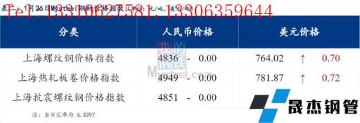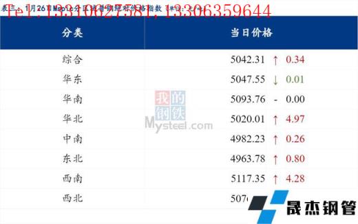 1月26日Myspic普鋼絕對(duì)價(jià)格指數(shù)變化:綜合指數(shù)5042.31,上漲0.34;螺紋鋼指數(shù)4821.4,上漲0.53;線材指數(shù)5153.66,上漲1.46;熱軋板卷指數(shù)4901.08,上漲1.51;冷軋板卷指數(shù)5401.75,上漲1.84;中厚板指數(shù)5041.64,上漲1.35。