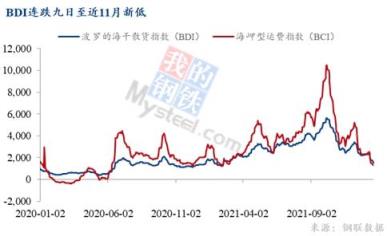 波羅的海干散貨運價指數(BDI)是反映全球礦石、煤炭等大宗散貨運價的權威指標。近三個月來,因為所有型船需求疲軟,截止2022年1月24日,波羅的海干散貨運價指數連續第十二個交易日下滑至1391點,為去年2月以來最低水準;BCI跌至891點為2020年6月以來新低。