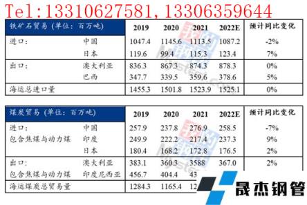 全球海運鐵礦石貿易在2021全年達到15.24億噸,同比增長1.5%,但增速預計將在2022年繼續放緩,因為中國的進口預計將繼續從2020的創紀錄水平回落,這是由于鋼材需求疲軟和鋼鐵產量的限制。從的247無縫鋼管廠家鐵水生產節奏也能展現端倪:10月開始,鐵水產量就一路走低,最終于12月中旬,247樣本鐵水日產量跌至歷史最低值198.7萬噸。
