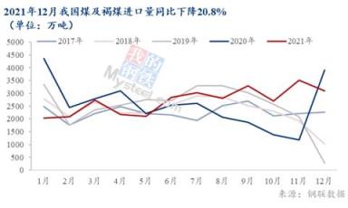 煤炭是與鐵礦石海運貿易體量相當的另一大宗商品,10月開始國內原煤產量在增產保供下不斷提高,也變相著削弱中國對海外煤的依賴:我國10-12月份原煤產量分別為3.6、3.7、3.8億噸屢創國內新高,對海外煤炭需求逐漸減弱,12月我國進口煤炭同比下滑20%。步入2022年1月,印尼煤炭出口禁令對海運市場算是雪上加霜。