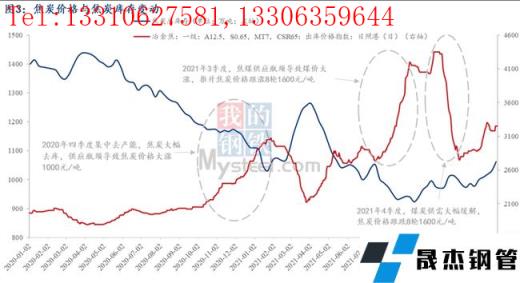 2)而2021年雖沒有再出現(xiàn)2020年4季度集中大幅去產(chǎn)能的情況。但仍出現(xiàn)了2021年三季度焦炭?jī)r(jià)格大漲1600元/噸的情形,兩個(gè)半月漲幅48%,漲幅明顯高于2020年四季度。這主要是由于焦煤供應(yīng)受限導(dǎo)致的煤價(jià)大漲推升焦炭成本大幅上漲,以呂梁低硫主焦煤來看,其價(jià)格從6月底至9月底漲了一倍(2050-4100元/噸),焦炭供應(yīng)矛盾從產(chǎn)能約束轉(zhuǎn)移至原料供應(yīng)受限。同樣的,2021年四季度后,國(guó)家出臺(tái)煤炭保供政策,原料供應(yīng)大幅緩解,同時(shí)需求端鐵水產(chǎn)量大減,最終傳導(dǎo)至焦煤價(jià)格大跌,焦炭?jī)r(jià)格應(yīng)聲回落1600元/噸。