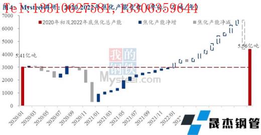 截至2021年1月21日,據(jù)調(diào)研統(tǒng)計(jì),到2022年底總焦化產(chǎn)能預(yù)計(jì)將達(dá)到5.54億噸/年,將高于2021年底的5.4億噸/年,年增幅2.9%。