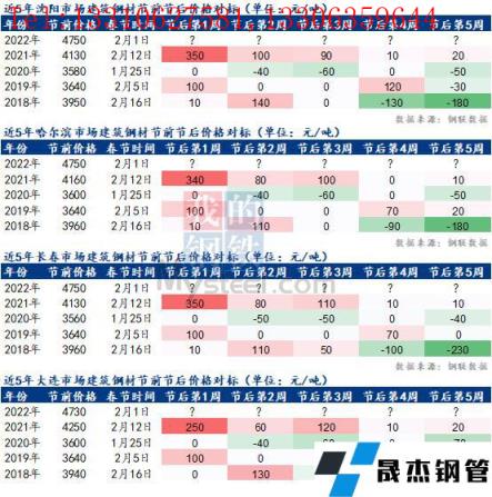 小編匯總了近5年春節(jié)前后東北建筑厚壁無縫鋼管市場價格變化情況,除2020年受公共衛(wèi)生事件影響平穩(wěn)運行外,其余年份節(jié)后首周多數(shù)都是“開門紅”狀態(tài),在第4-5周基本會出現(xiàn)沖高后回調(diào)的情況。具體情況如下: