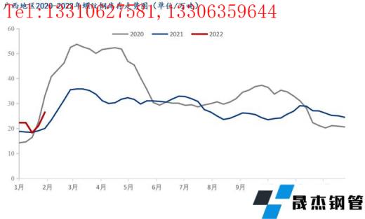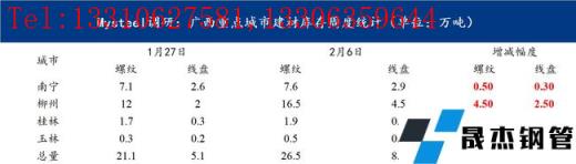 本周廣西建筑厚壁無縫鋼管價(jià)格小幅上漲,較節(jié)前上漲80元/噸。春節(jié)期間由于需求停滯,貿(mào)易商提貨較少,多數(shù)滯留在廠內(nèi),因而社庫(kù)庫(kù)存整體增加幅度較往年有所降低。商家整體心態(tài)尚可,對(duì)后市觀望情緒濃厚。截至昨日(正月初六)據(jù)我網(wǎng)跟蹤調(diào)研統(tǒng)計(jì),廣西市場(chǎng)庫(kù)存建筑厚壁無縫鋼管34.6萬噸,較節(jié)前相比增加8.4萬噸,較去年節(jié)后同期相比減少5.9萬噸。從區(qū)域數(shù)據(jù)來看,南寧市場(chǎng)主要庫(kù)存資源為桂萬鋼,其商戶資源多數(shù)在廠內(nèi),只要節(jié)前零星商戶的資源到本倉(cāng)庫(kù),以及有云南材等資源,因而整體增加了0.8萬噸;而柳州市場(chǎng)由于柳鋼資源多數(shù)都會(huì)發(fā)往物流園,因而資源相對(duì)增加幅度較高,較春節(jié)前增加7萬噸。從整體庫(kù)存來看,廠家和社會(huì)庫(kù)存壓力尚在,但是隨著后期需求的釋放,或?qū)⒂兴徑?,短期本地市?chǎng)價(jià)格或?qū)⒗^續(xù)面臨小幅上漲。