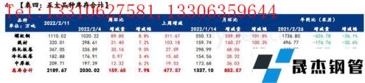 從農歷周期來看,本周無縫厚壁鋼管廠家庫存和社會庫存同比去年節后第二周分別低33%和27.5%;建材和板材同比去年節后第二周分別低36%和11.8%;從庫存水平來看,以累庫天數21-23天為基準,今年節后庫存峰值大概率低于去年同期水平,峰值出現時間節點或在3月上旬,屆時冬儲資源將基本發運完畢,市場將進入主動去庫階段。