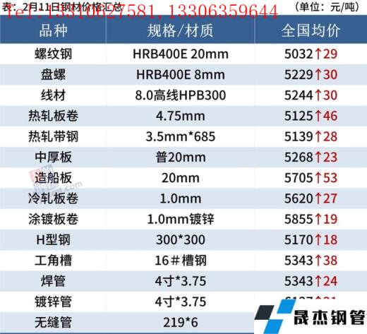 建筑厚壁無縫鋼管:2月11日,全國31個主要城市20mm三級抗震螺紋鋼均價5032元/噸,較上個交易日上漲29元/噸。短期來看,目前現(xiàn)貨市場仍然處于供需雙弱的格局,情緒面驅動價格上漲,同時當前現(xiàn)貨市場庫存總量遠低于去年同期。因此預計下周國內建筑厚壁無縫鋼管價格或將繼續(xù)趨強為主。