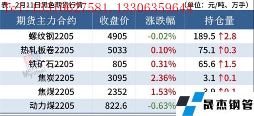 進口礦:2月11日,山東地區(qū)進口鐵礦石現(xiàn)貨價格先揚后抑,收盤后市場賣盤增加,無縫厚壁鋼管廠家詢盤冷清,市場成交情況一般。截止發(fā)稿,市場部分成交:日照港:PB粉985元/噸;青島港PB粉978元/噸;嵐山港PB粉970元/噸。華東地區(qū)因天氣原因疊加冬奧會限產,無縫厚壁鋼管廠家檢修數(shù)量增加,本周鐵水產量有所下降,目前無縫厚壁鋼管廠家多以消耗庫存為主,短期無縫厚壁鋼管廠家采購鐵礦石意向偏弱。