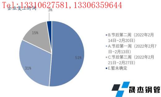 本次調研樣本企業中預計節后第一周(2022年2月7日-2月13日)能全部復工的占比31%;預計節后第二周(2022年2月14日-2月20日)能全部復工的占比51%;預計節后第三周(2022年2月21日-2月27日)能全部復工的占比15%。