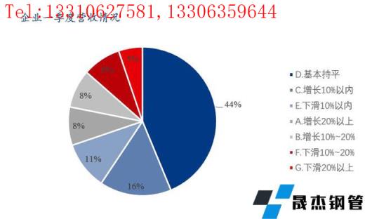 4、預計一季度營業收入有所上漲。預計企業一季度營業收入有所增長的占比32%,其中增長10%以上的和增長10%以內的均占16%;與去年同期相比,預計企業一季度營業收入基本持平的占比44%。