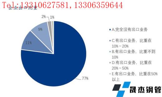 本次調研樣本企業中,77%完全沒有出口業務,出口業務比重在20%以內的占比為20%,出口業務比重在20%以上的占比為3%。