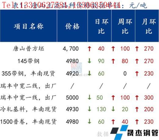 145帶鋼出廠4900元/噸,較節前漲130元/噸。355帶鋼市場現貨價格4920元/噸,較節前漲120元/噸、焊管價格5050元/噸,鍍鋅管價格5750元/噸,較節前持平。