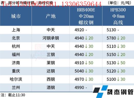 ◎北京:15日早盤建材市場價格跌20,河鋼小螺紋5060-5080,大螺紋4920-4940,盤螺5100。(單位:元/噸)