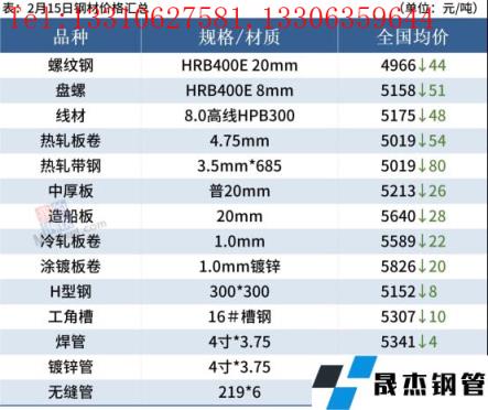 熱軋板卷:2月15日,全國(guó)24個(gè)主要城市4.75mm熱軋板卷均價(jià)5019元/噸,較上個(gè)交易日價(jià)格下跌54元/噸。現(xiàn)貨市場(chǎng)早盤報(bào)價(jià)小幅走弱,跌后市場(chǎng)成交乏力,加之現(xiàn)貨成交不佳,午后現(xiàn)貨價(jià)格繼續(xù)下跌。從目前情況來看,前期邏輯低庫存低供應(yīng)雖然還在,但原料端雙焦和鐵礦的走弱,對(duì)市場(chǎng)的影響均大于基本面影響,導(dǎo)致了現(xiàn)貨回調(diào)。綜合來看,預(yù)計(jì)16日熱軋板卷價(jià)格或?qū)⑷鮿?shì)震蕩運(yùn)行。