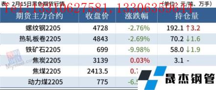 2月15日,國(guó)內(nèi)厚壁無縫鋼管市場(chǎng)價(jià)格跌幅擴(kuò)大,唐山普方坯出廠價(jià)跌50至4650元/噸。今日黑色期貨延續(xù)跌勢(shì),市場(chǎng)情緒疲軟,加之需求尚未完全啟動(dòng),市場(chǎng)成交低迷。