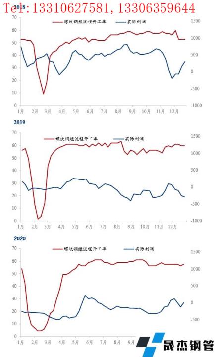 而且單純從2018年、2019年和2020年的走勢圖中也可以觀察到兩組數據在一定的時間段內有相似的波動性,在沒有長假日的影響下,電弧爐無縫厚壁鋼管廠家的開工率會隨著實際利潤上下浮動。而從歷史經驗來看,沒有季節性擾動的情況下,我國電弧爐開工率一般長期維持在50%以上,而最高會維持在60%左右,這與我國的電弧爐現狀有很大的關系,一方面是電弧爐無縫厚壁鋼管廠家集中度較低,生產依然存在亂象;另一方面是由于廢鋼的煉鋼成本在我國相對高于鐵礦石的煉鋼成本,以及我國廢鋼量相對較低,基本限制了電弧爐開工率的向上空間。