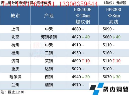 ◎濟南:17日早盤建材市場價格漲10。萊鋼螺紋4820,永鋒、石橫螺紋4810,永鋒、石橫盤螺5110。(單位:元/噸)