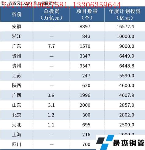 據不完全統計,截至2月16日,廣東、江西、江蘇、北京、上海、貴州、山東、浙江、四川、廣西、陜西、河北、安徽等13個省份發布了2022年重點項目投資計劃清單,上述清單中合計共24778個項目,年度計劃投資額合計超7.28萬億元(不包含四川)。