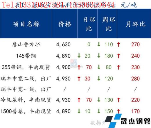 今日唐山管帶價格漲跌互現(xiàn),其中355帶鋼價格較上一交易日漲70元/噸,145帶鋼較上一交易日跌20元/噸,管材價格暫且持穩(wěn)。市場成交增量。