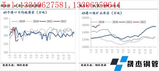 自2021年11月中旬以來(lái),鐵礦石價(jià)格上漲400元/噸,漲幅達(dá)69.32%;相應(yīng)的高爐開工率下降2.15%。市場(chǎng)普遍認(rèn)為鐵礦石價(jià)格上漲偏離實(shí)際基本面情況,疊加2月15日鐵礦石迎來(lái)強(qiáng)監(jiān)管,鐵礦石價(jià)格出現(xiàn)回落。2月18日,本周五鐵礦石價(jià)格820元/噸,較上周下跌133元/濕噸。鐵礦石價(jià)格下跌從兩個(gè)方面影響厚壁無(wú)縫鋼管價(jià)格:A、厚壁無(wú)縫鋼管成本下移,厚壁無(wú)縫鋼管支撐減弱;B、扭轉(zhuǎn)黑色產(chǎn)業(yè)鏈偏樂(lè)觀的市場(chǎng)情緒,降低厚壁無(wú)縫鋼管追漲的風(fēng)險(xiǎn)偏好,從而帶動(dòng)厚壁無(wú)縫鋼管價(jià)格下跌。