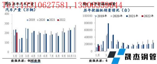 厚壁無縫鋼管方面,1月厚壁無縫鋼管進入消費淡季,但在厚壁無縫鋼管低庫存和經濟穩增長預期下,價格震蕩運行。1月有色金屬產量環比小幅下降。需求端有所分化,房地產行業信貸政策回暖,但1月戶外施工逐漸減少,以南方存量施工為主;汽車行業1月進入生產淡季,疊加春節影響,產量環比大幅下降;工程機械1月銷量降幅收窄,但國內消費降幅繼續擴大,出口銷量超預期“穩增長”;家電方面,1月份空調產量環比小幅增長。整體看,1月下游消費進入季節性淡季,但原材料供應相對穩定。