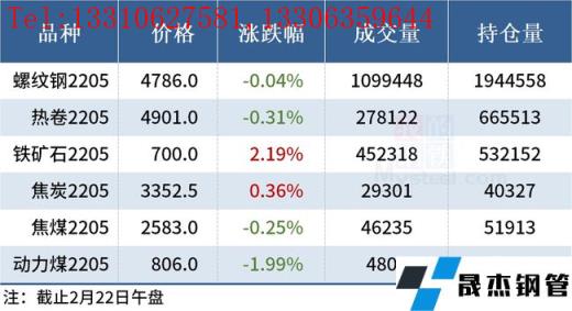 免責聲明:本網站(山東聊城晟杰無縫鋼管廠www.maturesexus.com)刊載的“2022年02月22日午報:鋼價多數上漲,黑色期貨高開低走”等均源于網絡,版權歸原作者所有,且僅代表原作者觀點,本文所載信息僅供參考。轉載僅為學習與交流之目的,如無意中侵犯您的合法權益,請及時聯系刪除。本網站刊登此篇文章并不意味著本站贊同其觀點或證實其內容的真實性,我們不對其科學性、嚴肅性等作任何形式的保證。如果侵犯了您的版權,請盡快聯系我們予以撤銷,謝謝合作!