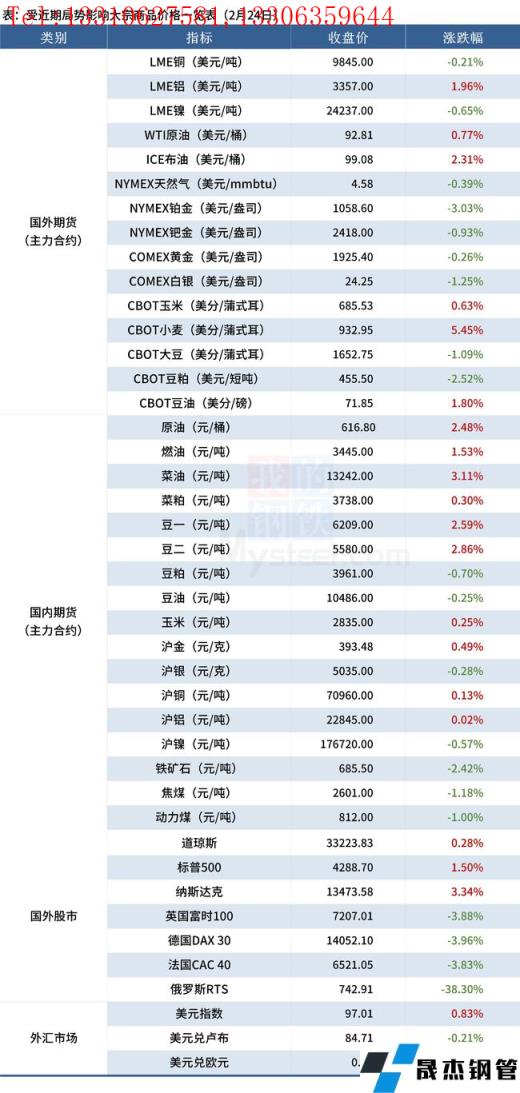 免責(zé)聲明:本網(wǎng)站(山東聊城晟杰無縫鋼管廠www.maturesexus.com)刊載的“受近期局勢影響大宗商品價格一覽表(2月24日)”等均源于網(wǎng)絡(luò),版權(quán)歸原作者所有,且僅代表原作者觀點,本文所載信息僅供參考。轉(zhuǎn)載僅為學(xué)習(xí)與交流之目的,如無意中侵犯您的合法權(quán)益,請及時聯(lián)系刪除。本網(wǎng)站刊登此篇文章并不意味著本站贊同其觀點或證實其內(nèi)容的真實性,我們不對其科學(xué)性、嚴(yán)肅性等作任何形式的保證。如果侵犯了您的版權(quán),請盡快聯(lián)系我們予以撤銷,謝謝合作!