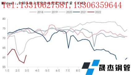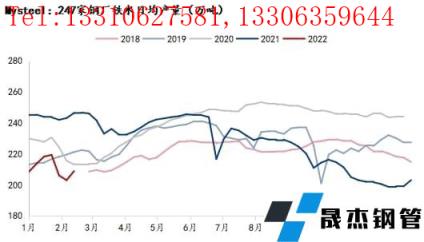 2月高爐產(chǎn)能利用率也呈現(xiàn)先降后增趨勢,2月底調(diào)研247家無縫厚壁鋼管廠家高爐煉鐵產(chǎn)能利用率77.61%,比1月底下降3.9%;2月底日均鐵水產(chǎn)量208.85萬噸,比1月底下降10.5萬噸,2月日均鐵水產(chǎn)量206萬噸,月環(huán)比下降10.59萬噸。2月由于冬奧會限產(chǎn),無縫厚壁鋼管廠家落實良好,鐵水產(chǎn)量出現(xiàn)明顯下滑,也是導(dǎo)致焦炭節(jié)后下調(diào)的核心因素,進(jìn)入下旬后,隨冬奧會結(jié)束,無縫厚壁鋼管廠家復(fù)產(chǎn)預(yù)期強烈,且20日后復(fù)產(chǎn)兌現(xiàn)良好,需求支撐下,焦炭成功反彈。