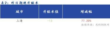 昨日收盤階段本地期現(xiàn)升貼水為-13元/噸,環(huán)比增幅77.20%。