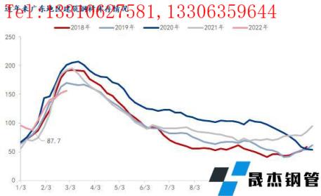 圖三:近年來廣州建筑厚壁無縫鋼管庫存情況圖數(shù)據(jù)來源: