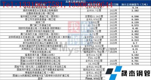 未來2-3年福建省高速公路在建新建線路總長約668.978公里,據不完全統計預計總用鋼量約30.235萬噸左右。