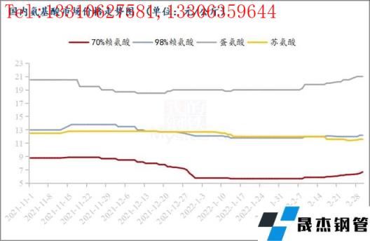 整體看來,俄烏對于中國來說并不是主要的出口國,俄烏局勢對于氨基酸市場而言影響較小。近期氨基酸市場價格整體上漲的原因多是玉米原料價格上漲及豆粕持續高位提振,疊加國內下游企業恐慌情緒蔓延。短期內氨基酸市場依舊維持偏強震蕩局面,持續關注玉米及豆粕的行情變化。