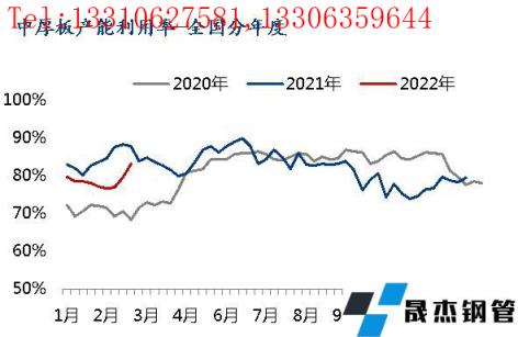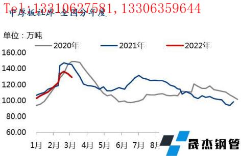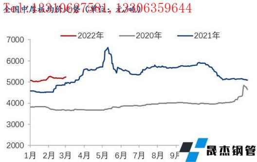 概述:2月份,國內(nèi)中厚板品種價格呈現(xiàn)沖高后小幅回落的走勢。供應方面,在冬奧會、春節(jié)、采暖季限產(chǎn)影響下,2月上中旬無縫厚壁鋼管廠家產(chǎn)量持續(xù)偏低,不過,由于無縫厚壁鋼管廠家盈利情況明顯好轉,因此,冬奧會過后,無縫厚壁鋼管廠家產(chǎn)量迅速增加。需求方面,由于今年春節(jié)返鄉(xiāng)比例同比去年大幅增加,所以今年春節(jié)后的需求啟動速度是緩慢的,不過由于無縫厚壁鋼管廠家接單較好,導致市場流通板資源在減少,這從今年節(jié)后社庫也能側面驗證。3月份,中板基本面從供需雙弱逐漸轉變?yōu)楣┬桦p強,那么價格走勢又如何呢?接下來,我們先看一下基本面情況。