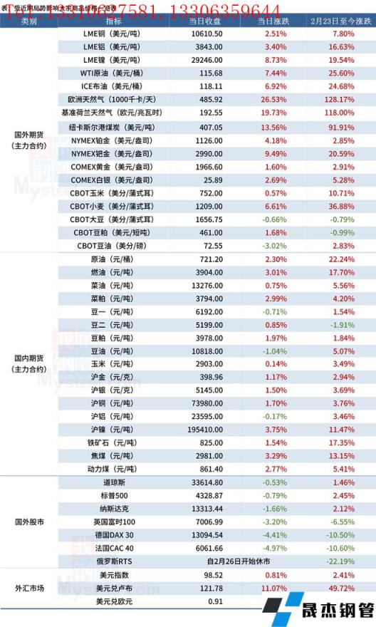 免責聲明:本網站(山東聊城晟杰無縫鋼管廠www.maturesexus.com)刊載的“受近期局勢影響大宗商品價格一覽表(3月4日)”等均源于網絡,版權歸原作者所有,且僅代表原作者觀點,本文所載信息僅供參考。轉載僅為學習與交流之目的,如無意中侵犯您的合法權益,請及時聯系刪除。本網站刊登此篇文章并不意味著本站贊同其觀點或證實其內容的真實性,我們不對其科學性、嚴肅性等作任何形式的保證。如果侵犯了您的版權,請盡快聯系我們予以撤銷,謝謝合作!