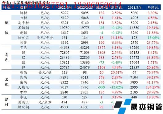 免責聲明:本網站(山東聊城晟杰無縫鋼管廠www.maturesexus.com)刊載的“周報:大宗原材料價格周報(2.28-3.4)”等均源于網絡,版權歸原作者所有,且僅代表原作者觀點,本文所載信息僅供參考。轉載僅為學習與交流之目的,如無意中侵犯您的合法權益,請及時聯系刪除。本網站刊登此篇文章并不意味著本站贊同其觀點或證實其內容的真實性,我們不對其科學性、嚴肅性等作任何形式的保證。如果侵犯了您的版權,請盡快聯系我們予以撤銷,謝謝合作!