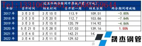 免責聲明:本網站(山東聊城晟杰無縫鋼管廠www.maturesexus.com)刊載的“數據:近五年“兩會期間”中厚板市場變化趨勢”等均源于網絡,版權歸原作者所有,且僅代表原作者觀點,本文所載信息僅供參考。轉載僅為學習與交流之目的,如無意中侵犯您的合法權益,請及時聯系刪除。本網站刊登此篇文章并不意味著本站贊同其觀點或證實其內容的真實性,我們不對其科學性、嚴肅性等作任何形式的保證。如果侵犯了您的版權,請盡快聯系我們予以撤銷,謝謝合作!